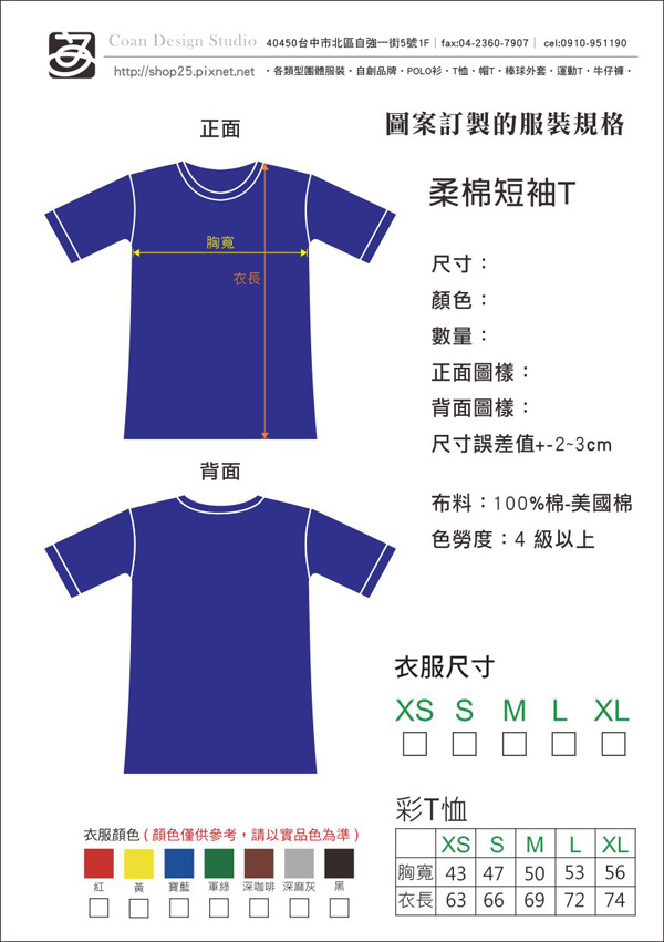 有色綿短T-尺寸表